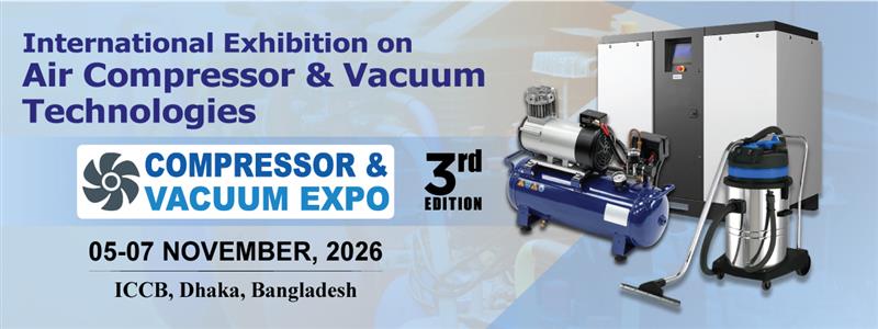 The 2nd International "Compressor & Vacuum Expo-2026" Returning to The International Convention City Bashundhara, Dhaka On November 05-07, 2026. This exhibition is one of the Premier Exhibitions for Compressed Air, Parts and Components of Compressor, Compressors, Post-processing Equipment for Compressed Air, Lubricants & Vacuum & Alight Industry.